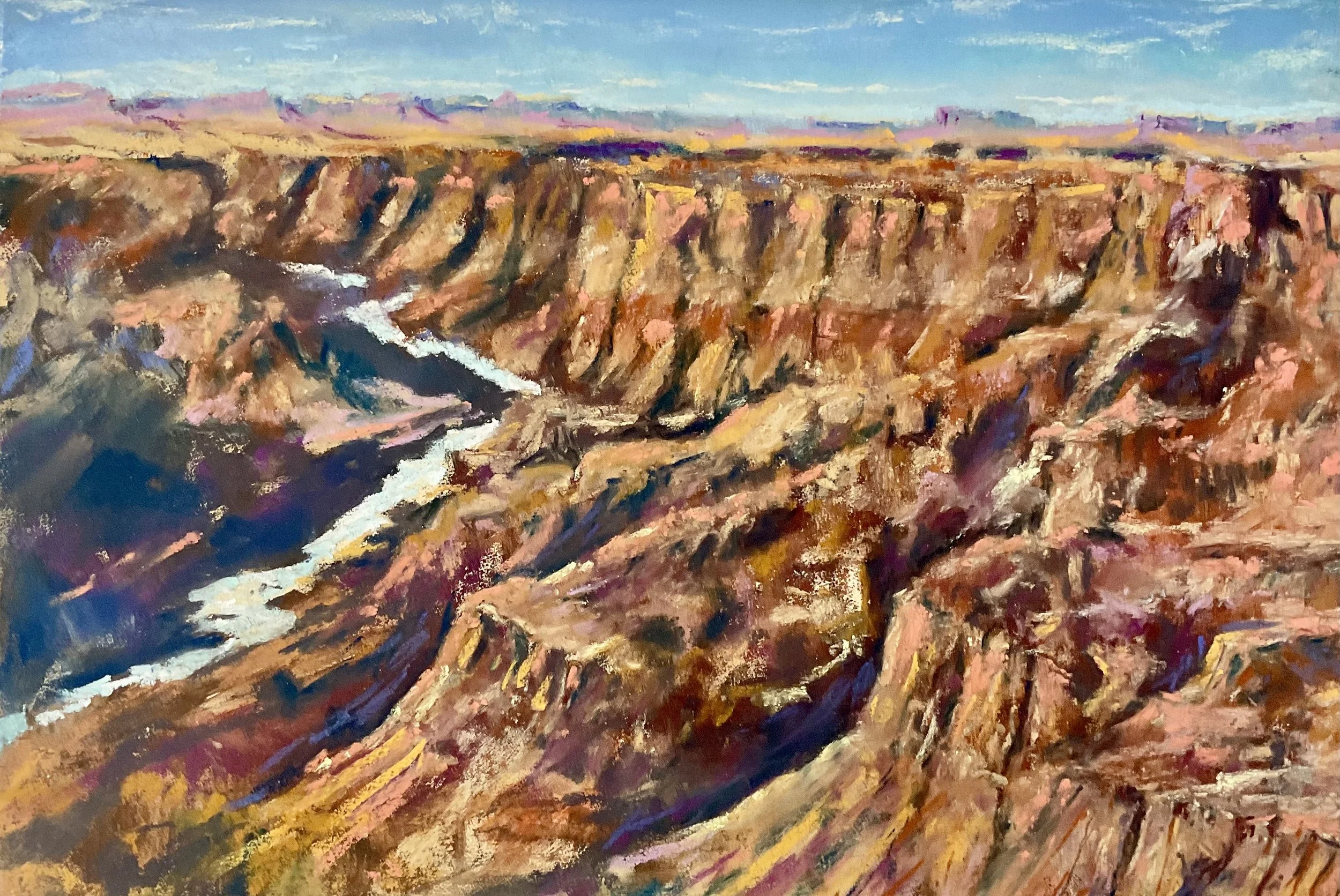 While continuing to paint in watercolours, he is currently focused on exploring and developing his art using the medium of soft pastels. The vibrant colours and quality of the medium have intrigued him since opening his first box of pastels.