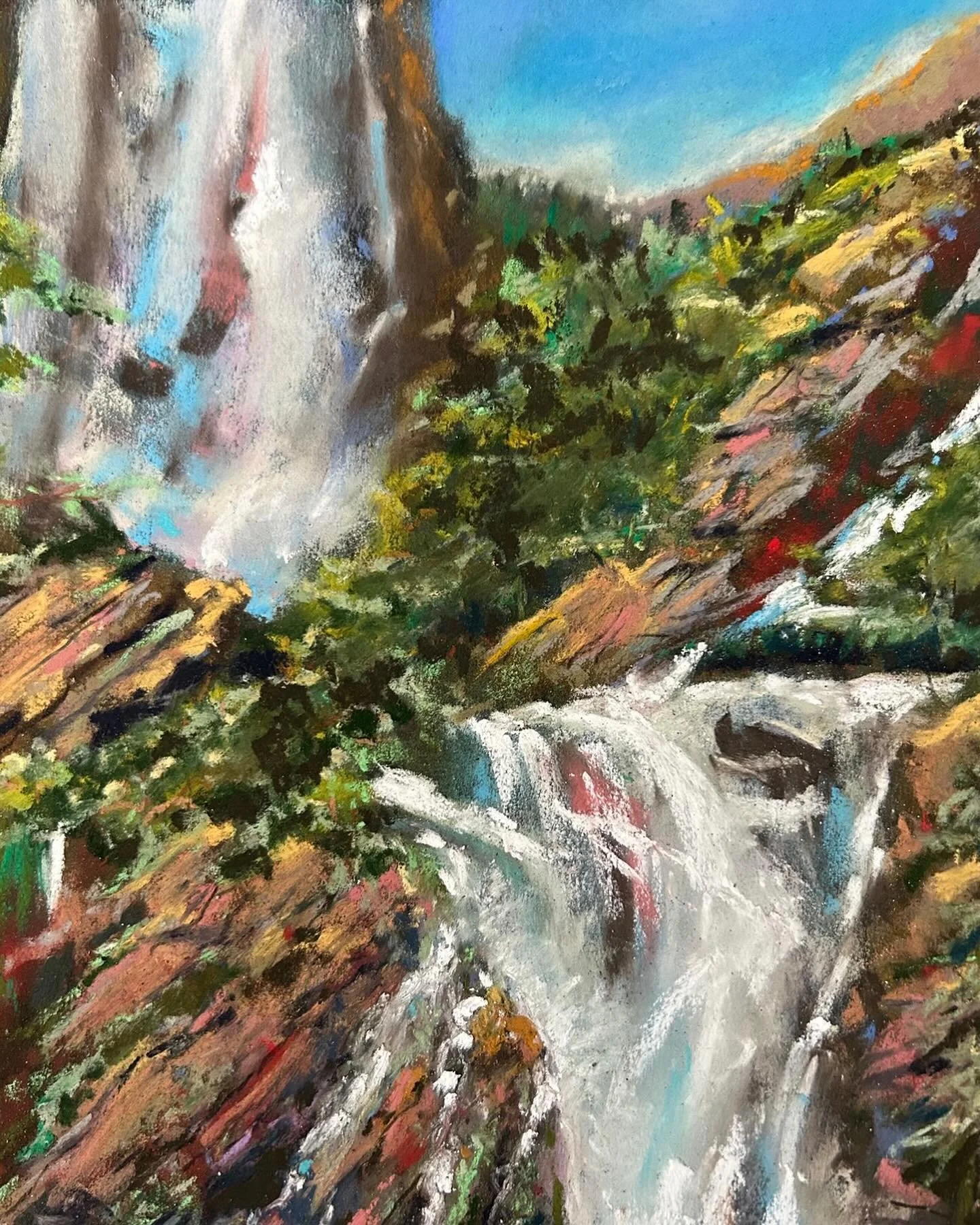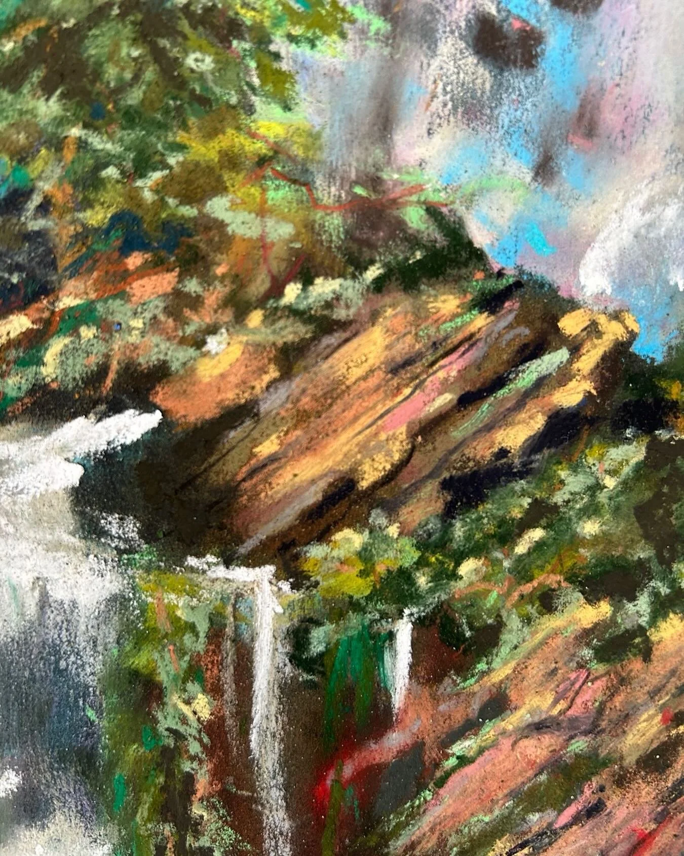 While continuing to paint in watercolours, he is currently focused on exploring and developing his art using the medium of soft pastels. The vibrant colours and quality of the medium have intrigued him since opening his first box of pastels.